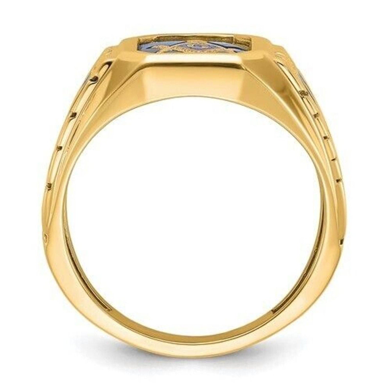 10k Yellow Gold Lab Created Sapphire Masonic Ring