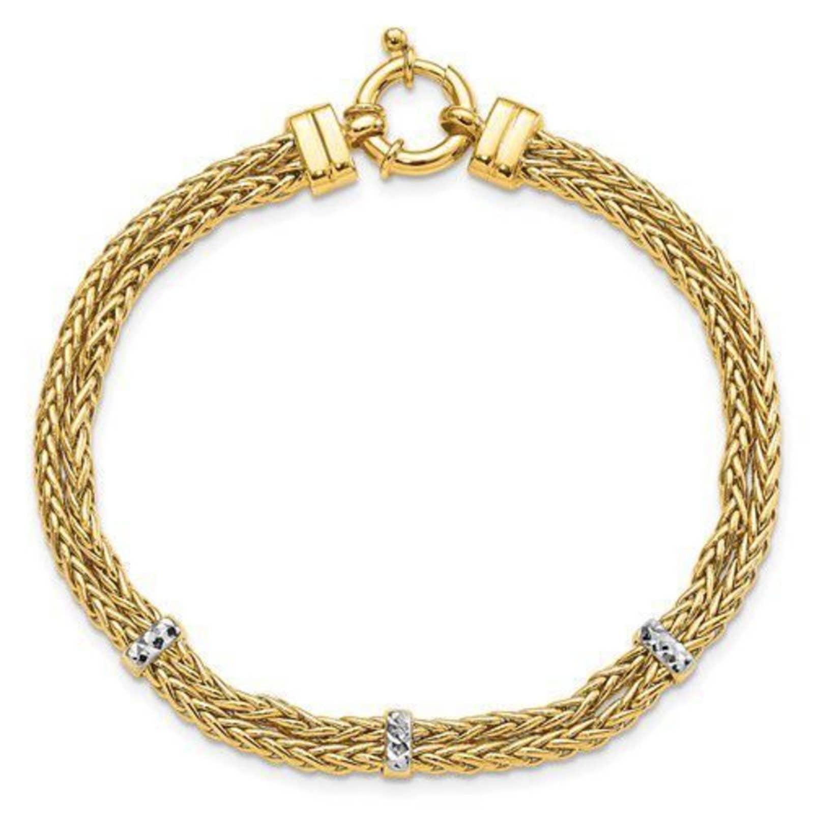 14K Gold Polished Double Wheat Chain Bracelet- 7.5 inches long