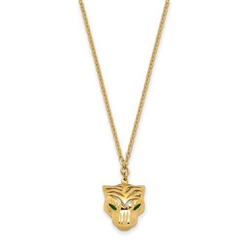 Leslie's 14k Polished Diamond cut Green Enamel Tiger on an 18 inch Necklace. The tiger measures 14.5mm long and 10mm wide. The 18 inch necklace is secured with a lobster claw clasp. Made in Italy.