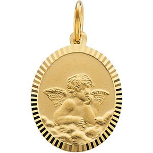 14K Yellow Oval Cherub (Guardian)Angel Medal
