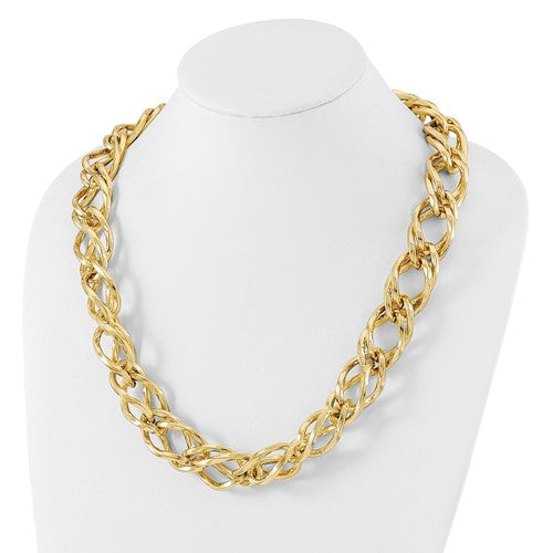 Made in Italy, this Bronze Diego Massimo Gold-tone Necklace is 25 inches long and is secured with a Black Rhodium-plated toggle clasp. This open link necklace is 21mm wide. The suggested retail value is $169.
