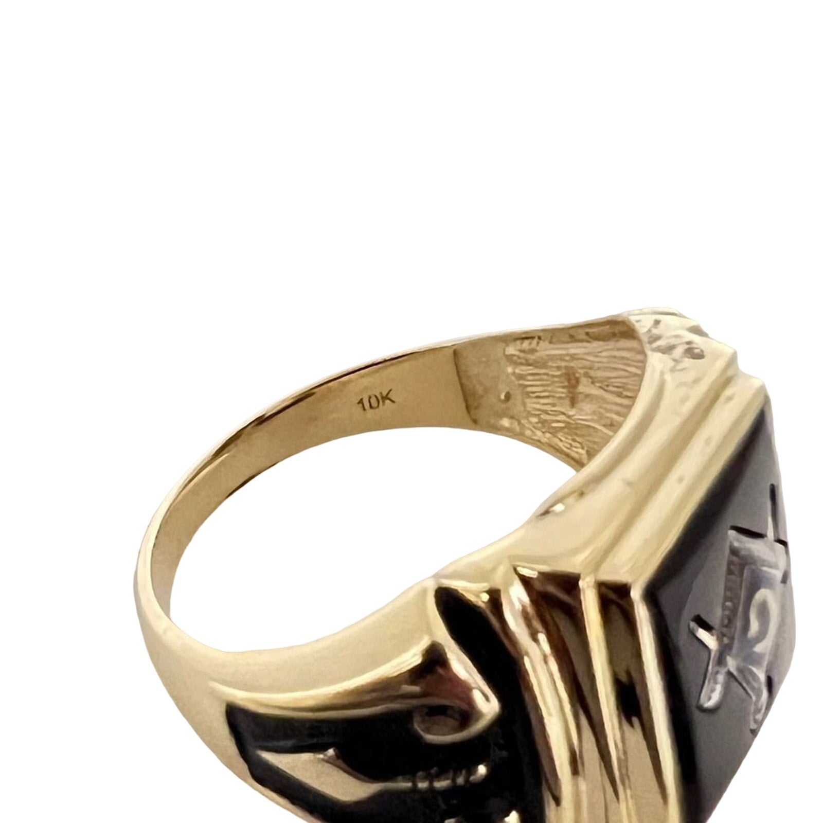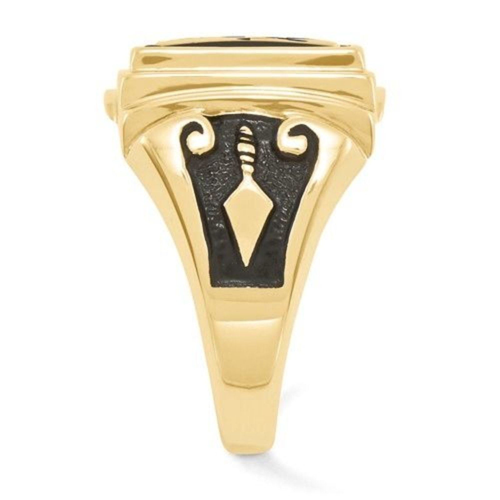 New 10k Men's Polished and Textured with Black Enamel and Onyx Masonic Ring
