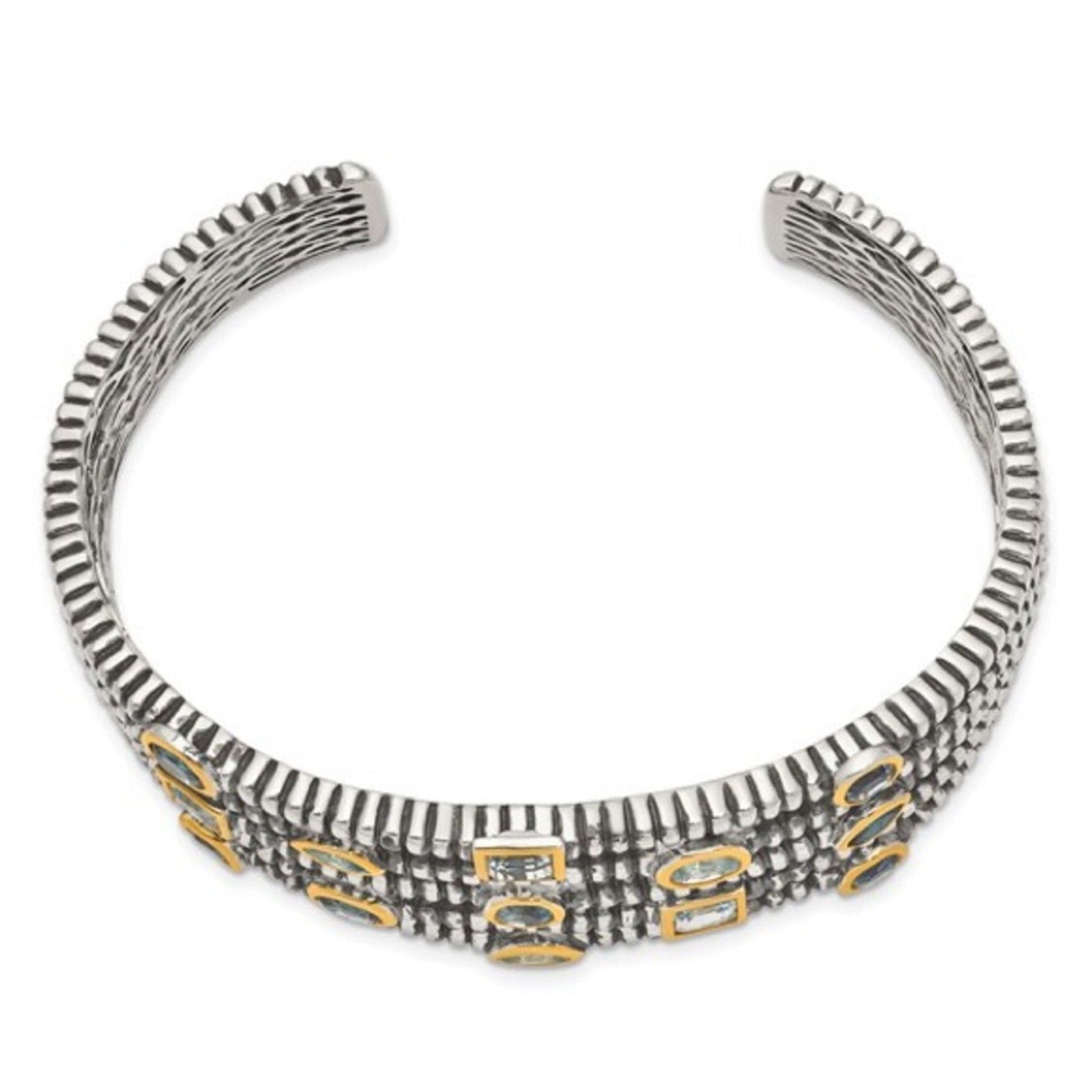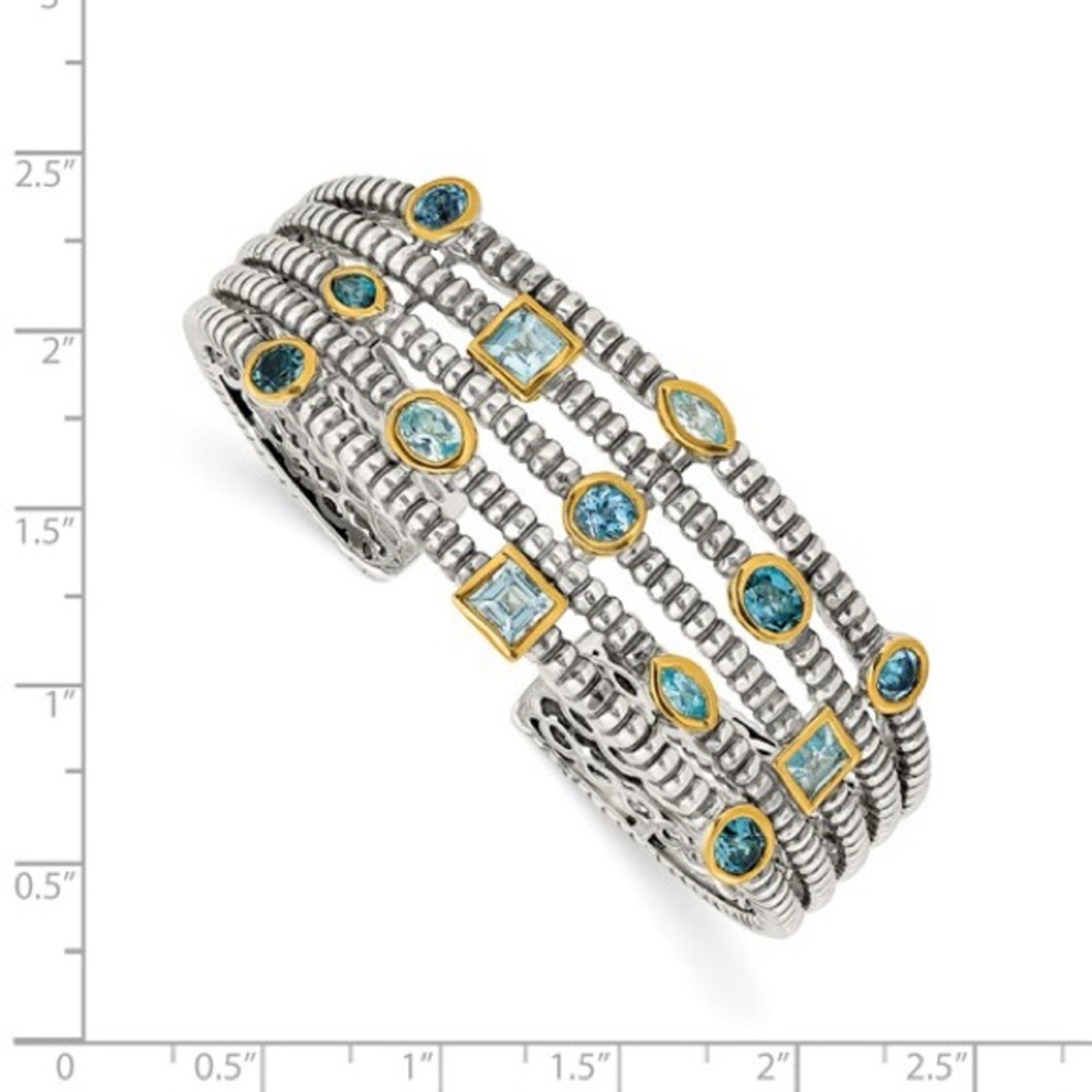 Shey Couture Silver & Gold Cuff Bracelet – Sky, Swiss & London Blue Topaz Stones