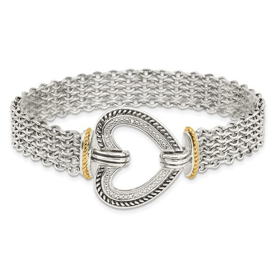 Shey Couture Sterling Silver with 14K Accent 7.75 Inch Antiqued Diamond Heart Bracelet