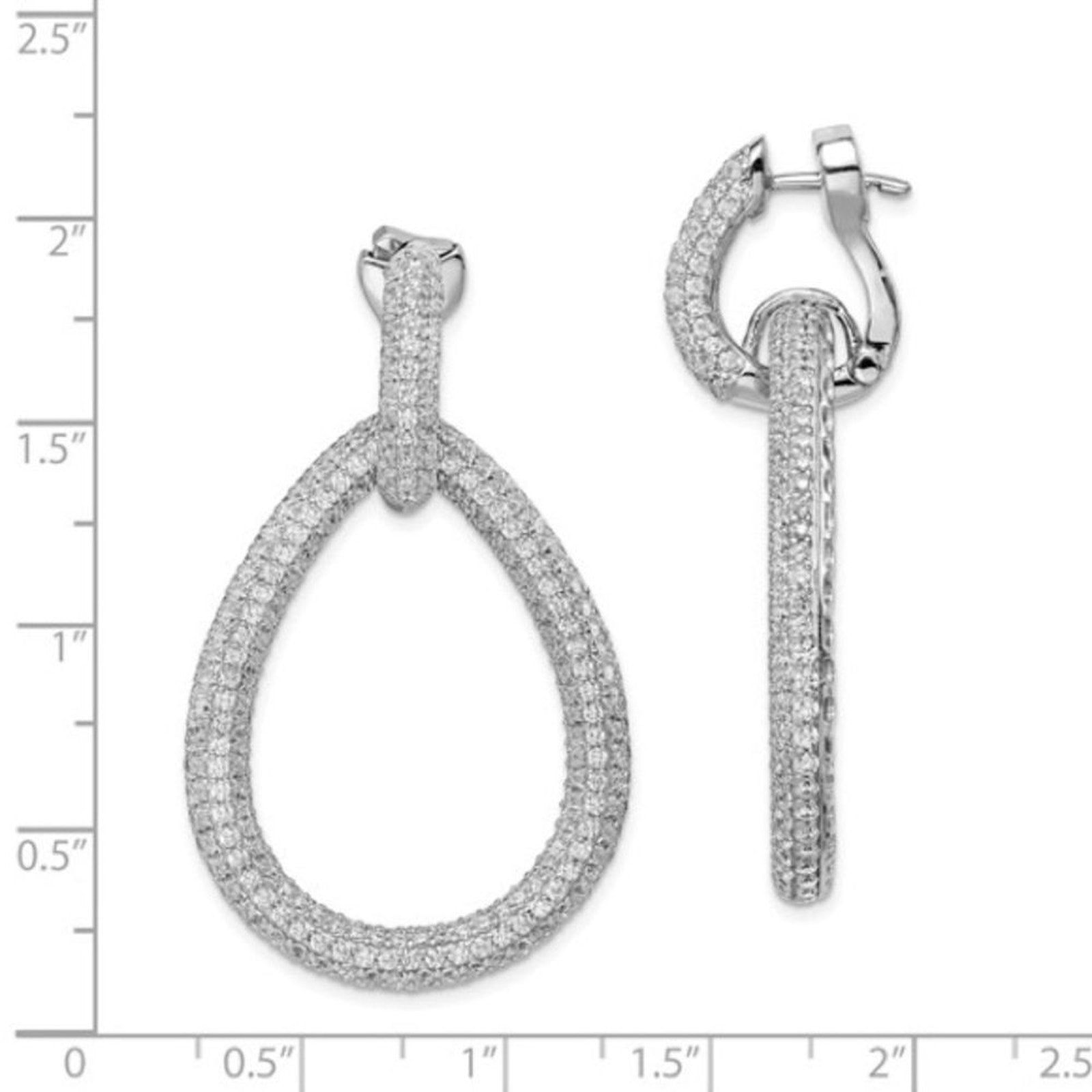 Sterling Silver Rhodium-plated 716 Stone Pavé CZ Hinged Teardrop Hoop Earrings