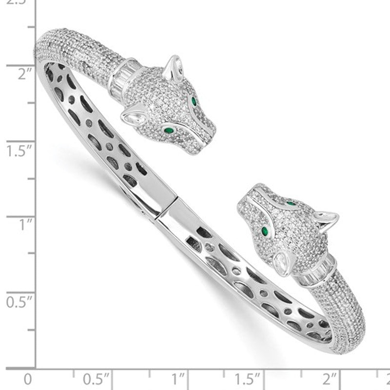 Sterling Silver Rhodium-plated Polished CZ Lioness Hinged Cuff Bangle
