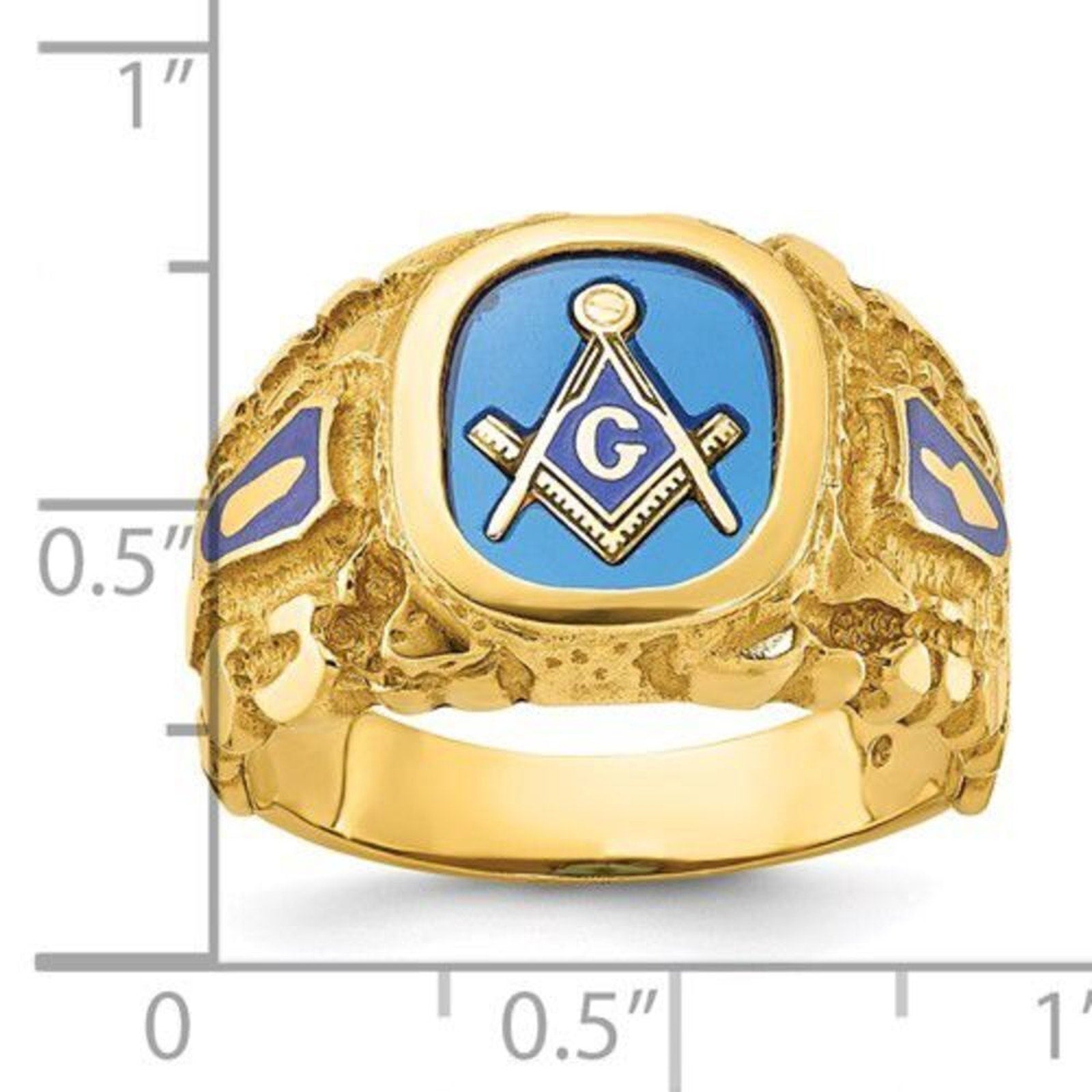 10K Polished and Textured Blue Enamel Created Sapphire Masonic Master Men's Ring