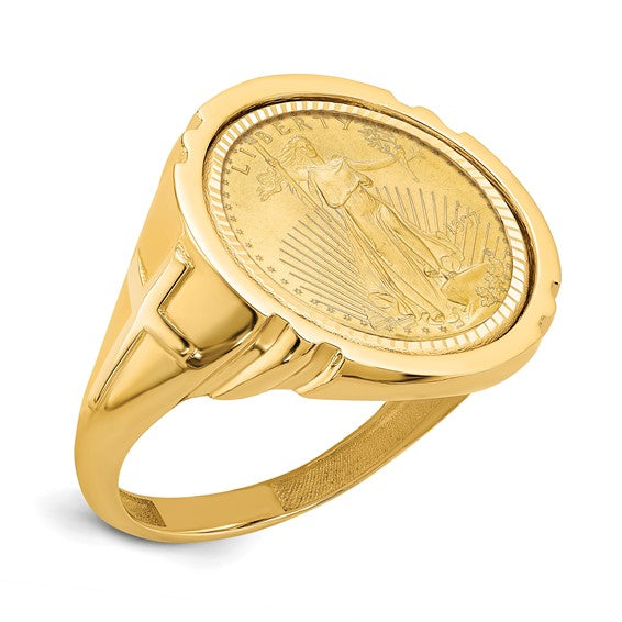 14k Diamond Cut Coin Ring with 1/10 oz 22k Liberty coin