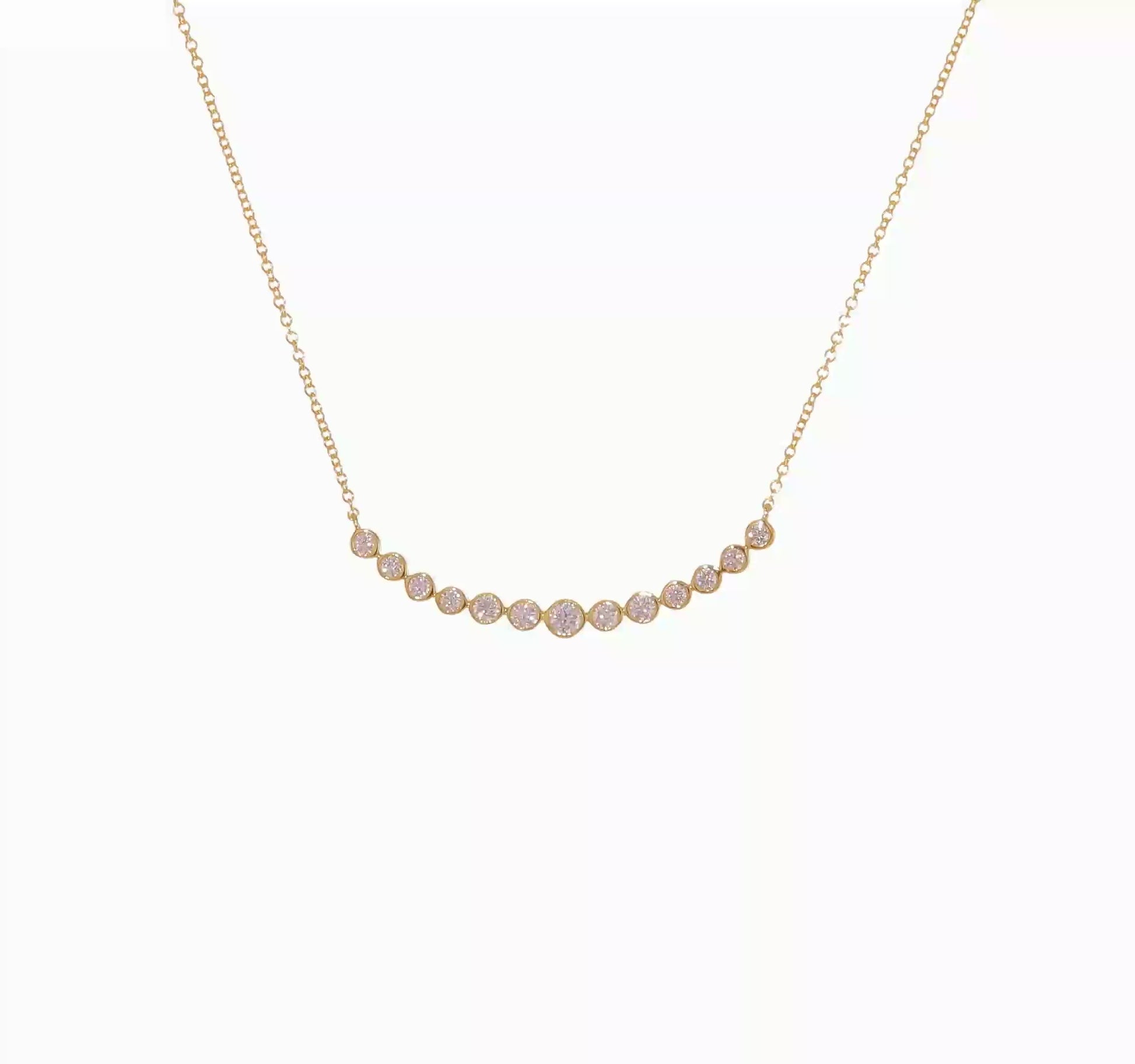Elevate your style and make a statement with this Lab Grown Diamond Curved Bar Necklace. Add a touch of sparkle and sophistication to your everyday look or save it for special occasions. With its high-quality materials and exquisite design, this necklace is a timeless piece that you will cherish for years to come.