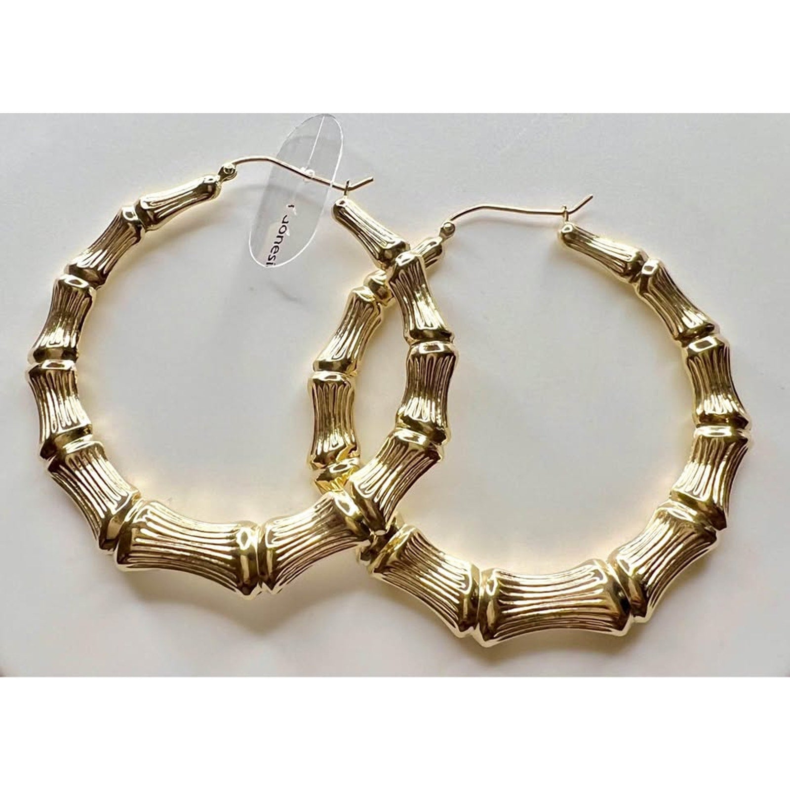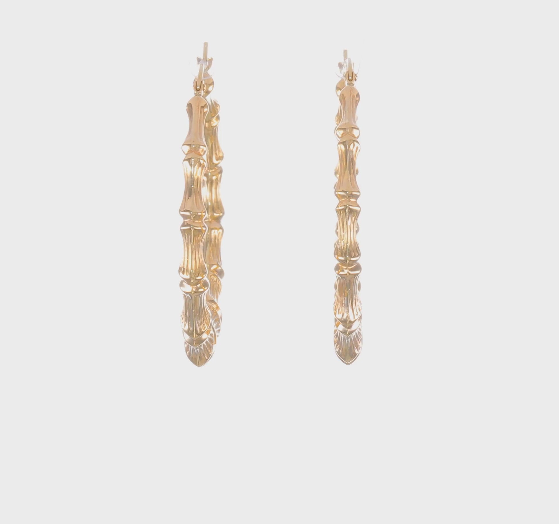 14k Gold Bamboo hoop earrings (33mm L x 8mm w)