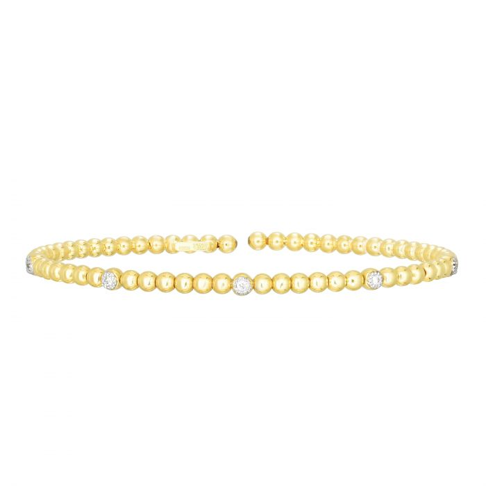 14kt Gold Yellow+Rhodium Finish, 3.3mm wide,Polished Cuff Bead Bangle with 0.0500ct 1.3mm White Diamond. Weighs 6.1 grams.