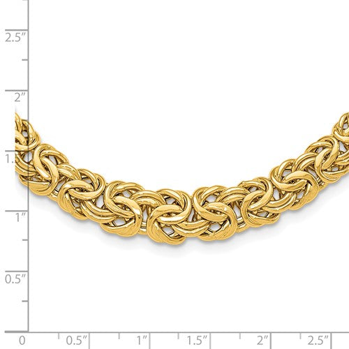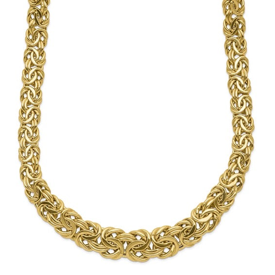 Elevate your style with this stunning 18K Gold Polished Tapered Byzantine Necklace. Made in Italy from high-quality yellow gold, this necklace is the perfect addition to any outfit, whether it's for a special occasion or everyday wear.