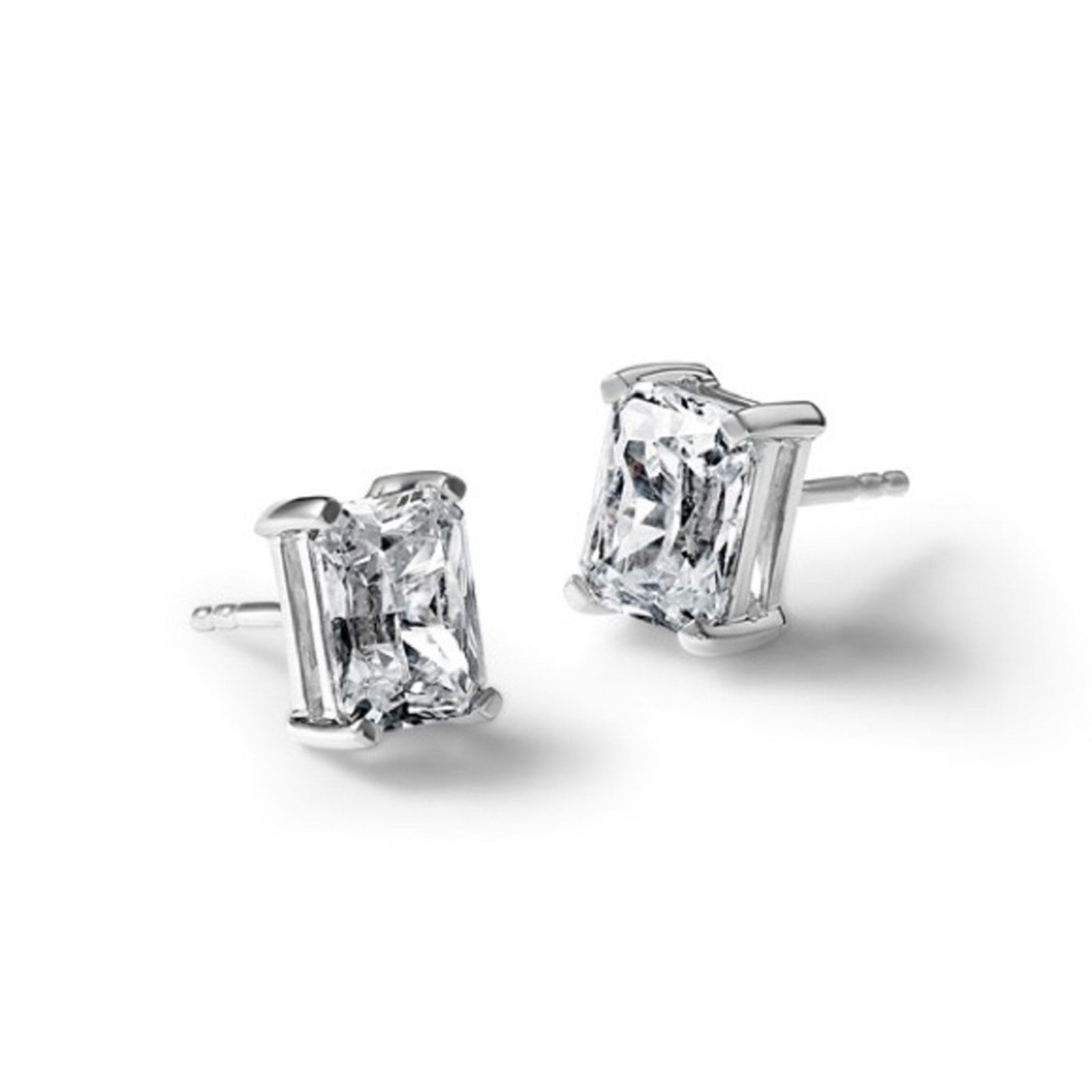 Unlike smaller studs, these feature a robust four-prong basket to protect the corners of the radiant-cut diamonds. They are equipped with post and push-back (friction) closures, designed for ease of use while maintaining a secure fit on the ear. With an average weight of 3.38 grams, they offer a premium, substantial feel.