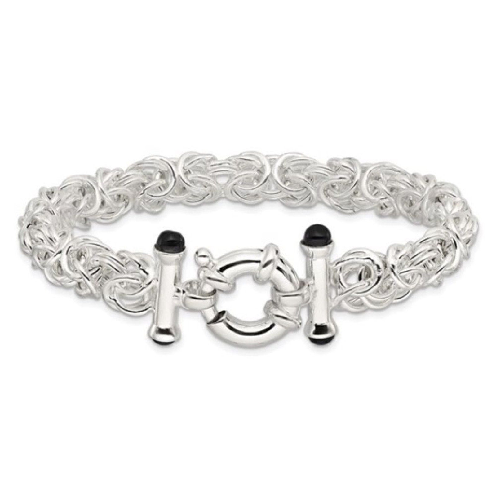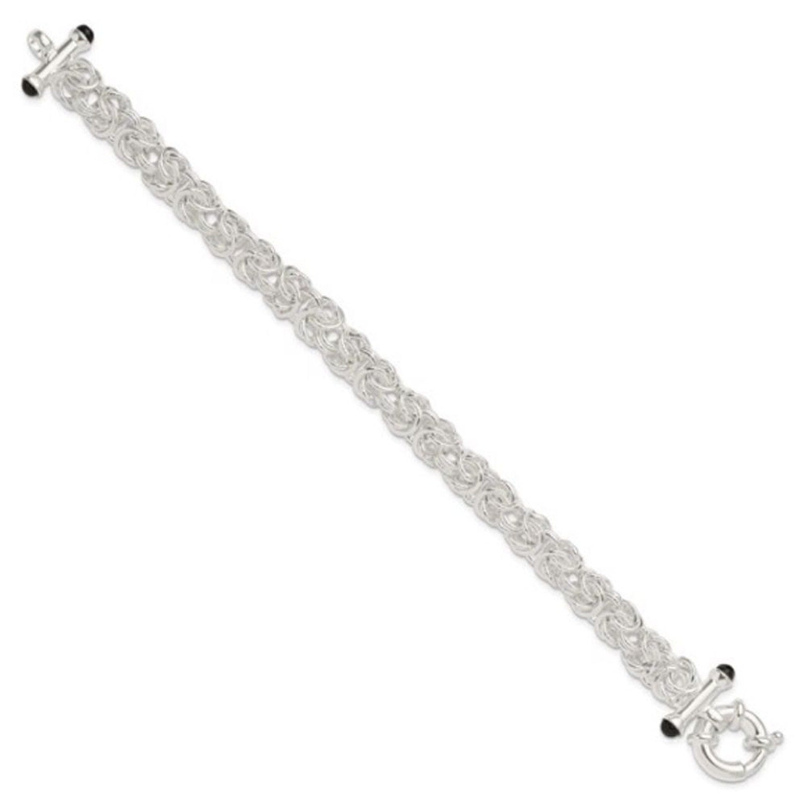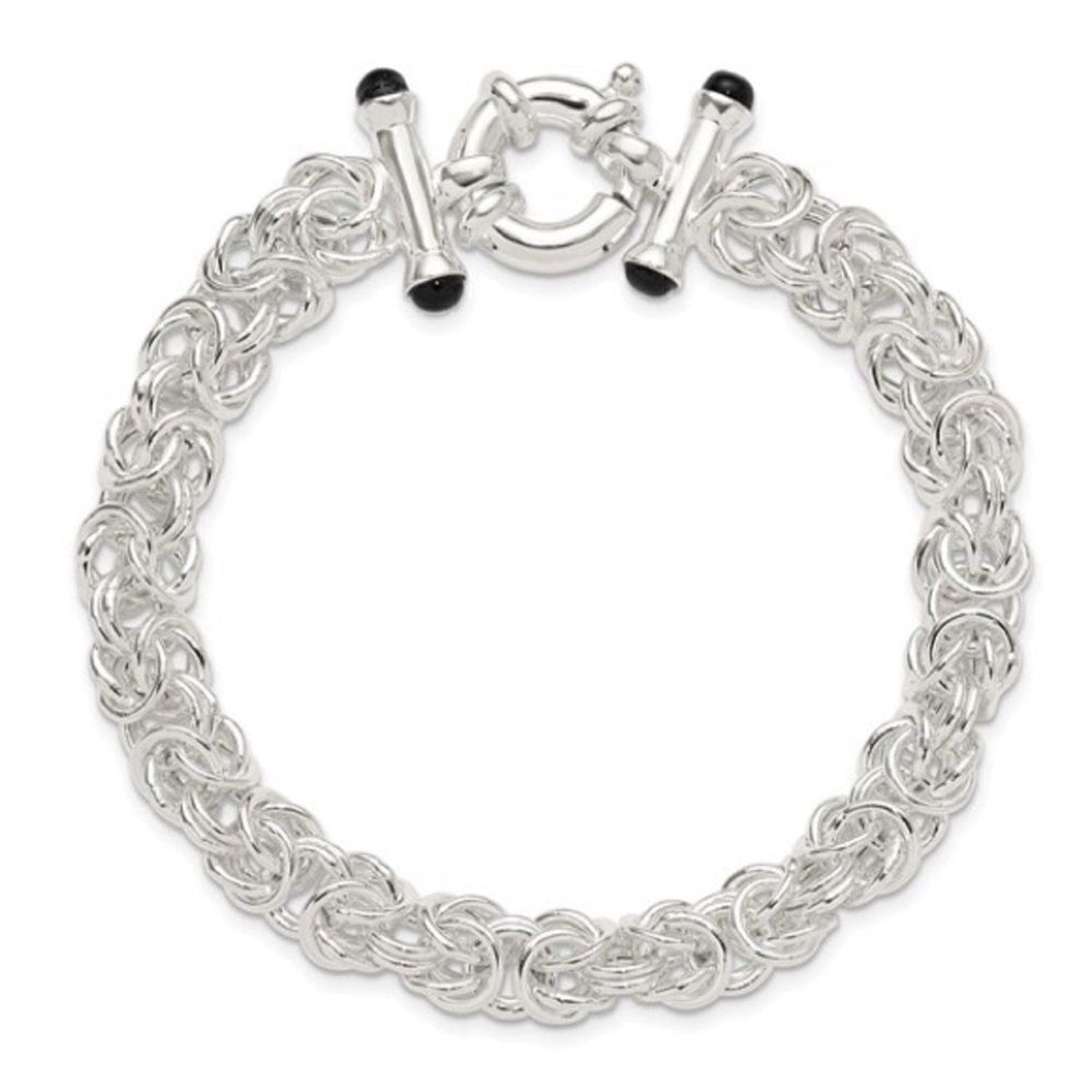 Elevate your accessory collection with timeless sophistication and bold contrast with this Sterling Silver Polished Black Onyx Byzantine Bracelet. Crafted from solid 925 sterling silver, this 8-inch bracelet features a beautifully intricate, rounded Byzantine chain design, known for its detailed craftsmanship and interwoven links that radiate strength and elegance.