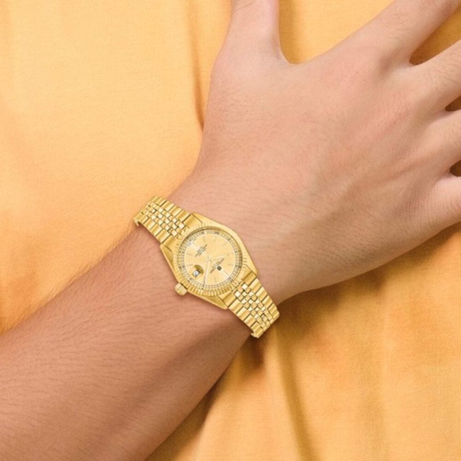 Seller Note: This watch is the ultimate gold statement piece. The ionic plating (IP) is a more advanced technique than traditional plating, making it much more resistant to wear and fading over time.
