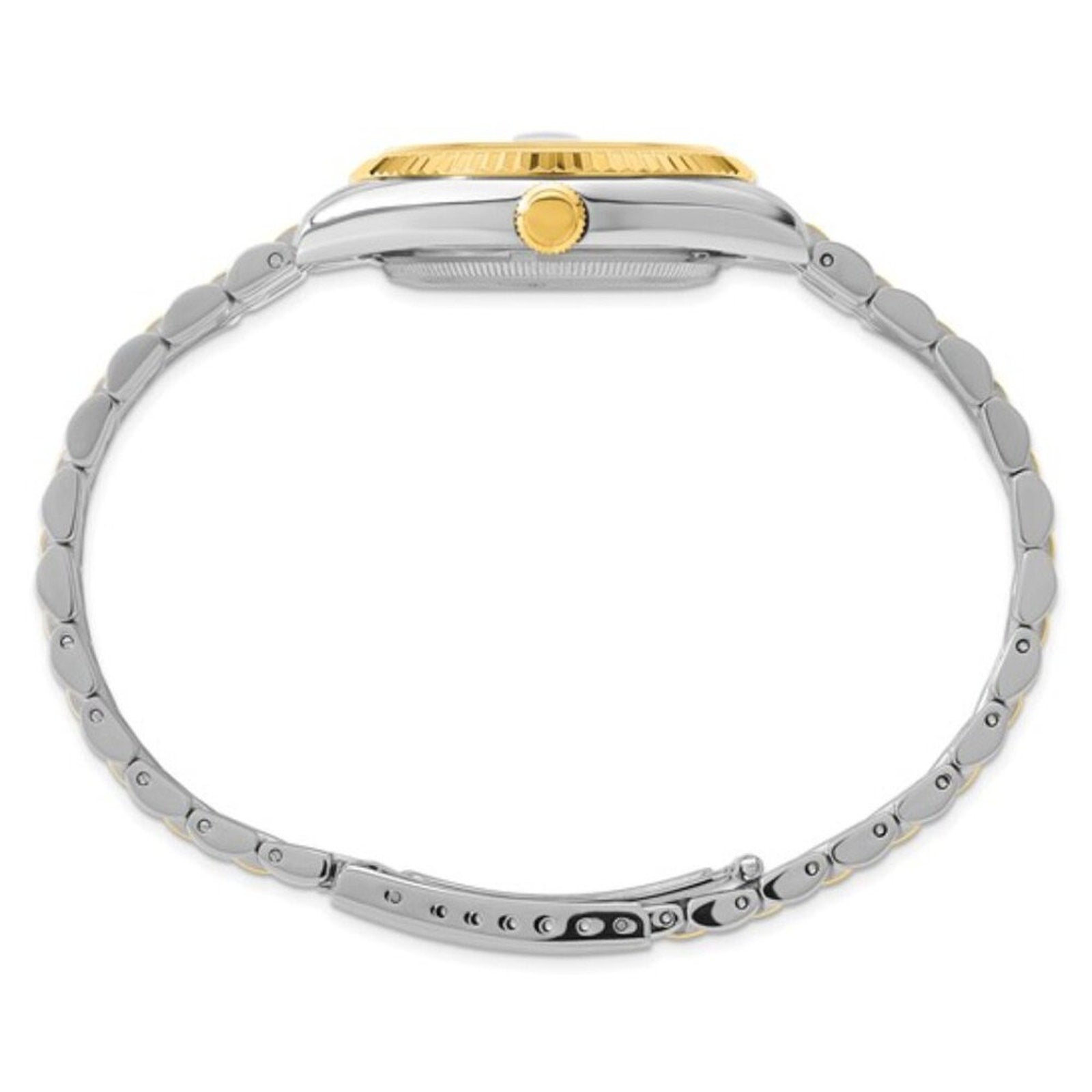 Case & Band: Constructed from durable IP-plated stainless steel with a Jubilee-style two-tone bracelet.