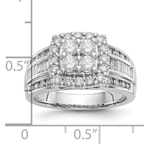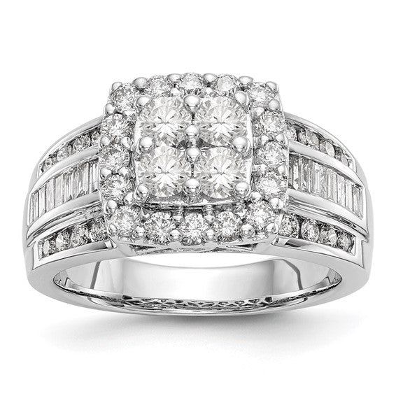 14K White Gold Complete Diamond Cluster Engagement Ring has the following features: