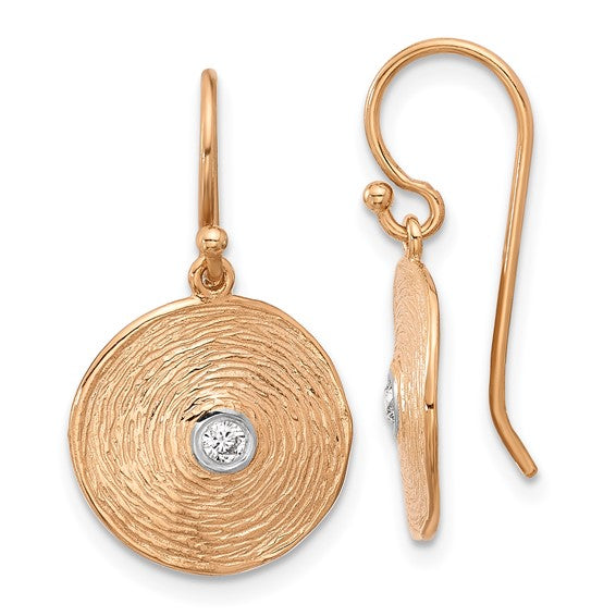Made with 14K rose gold, these earrings feature a beautiful diamond swirl circle design that adds a touch of sophistication to any outfit. The French wire closure ensures a secure and comfortable fit.