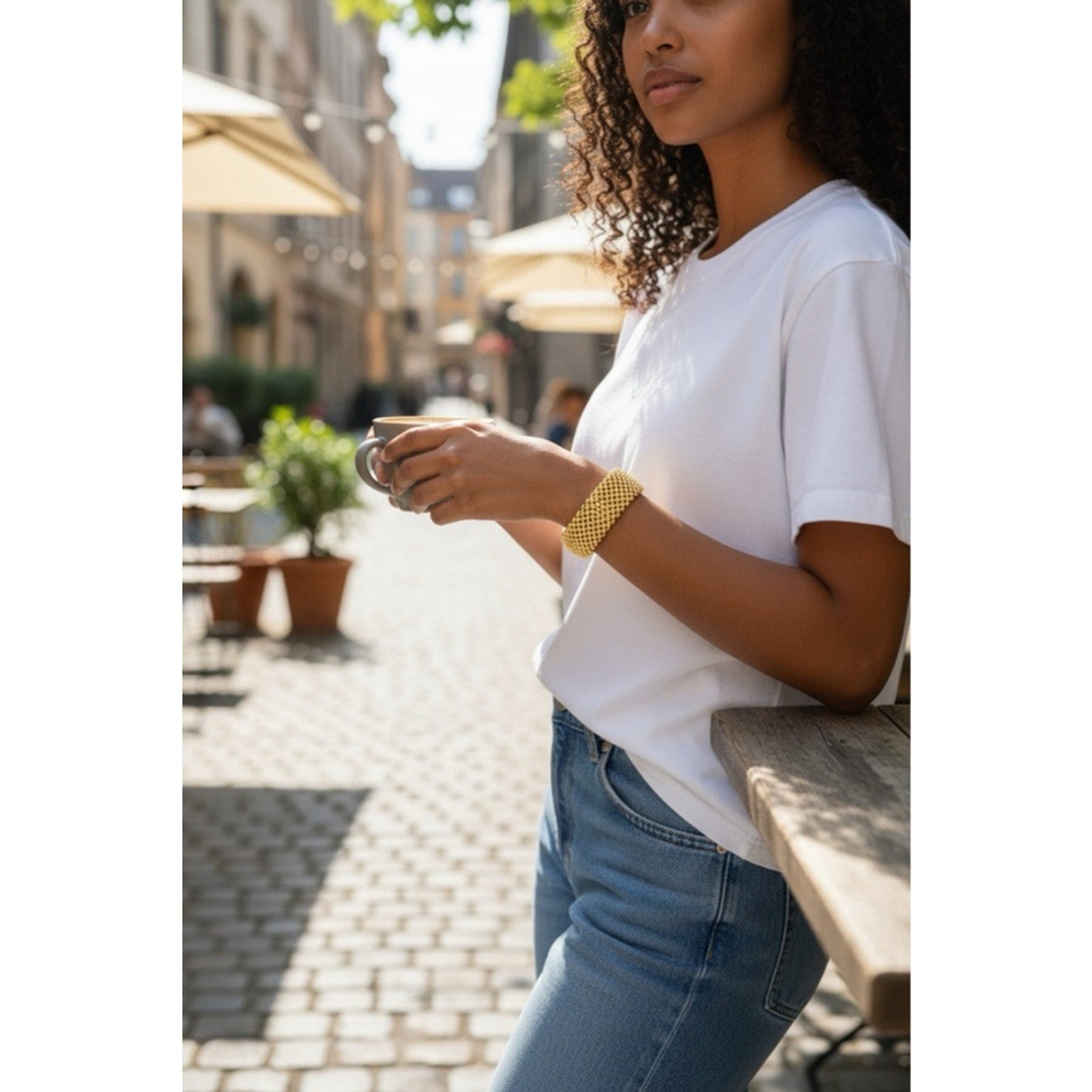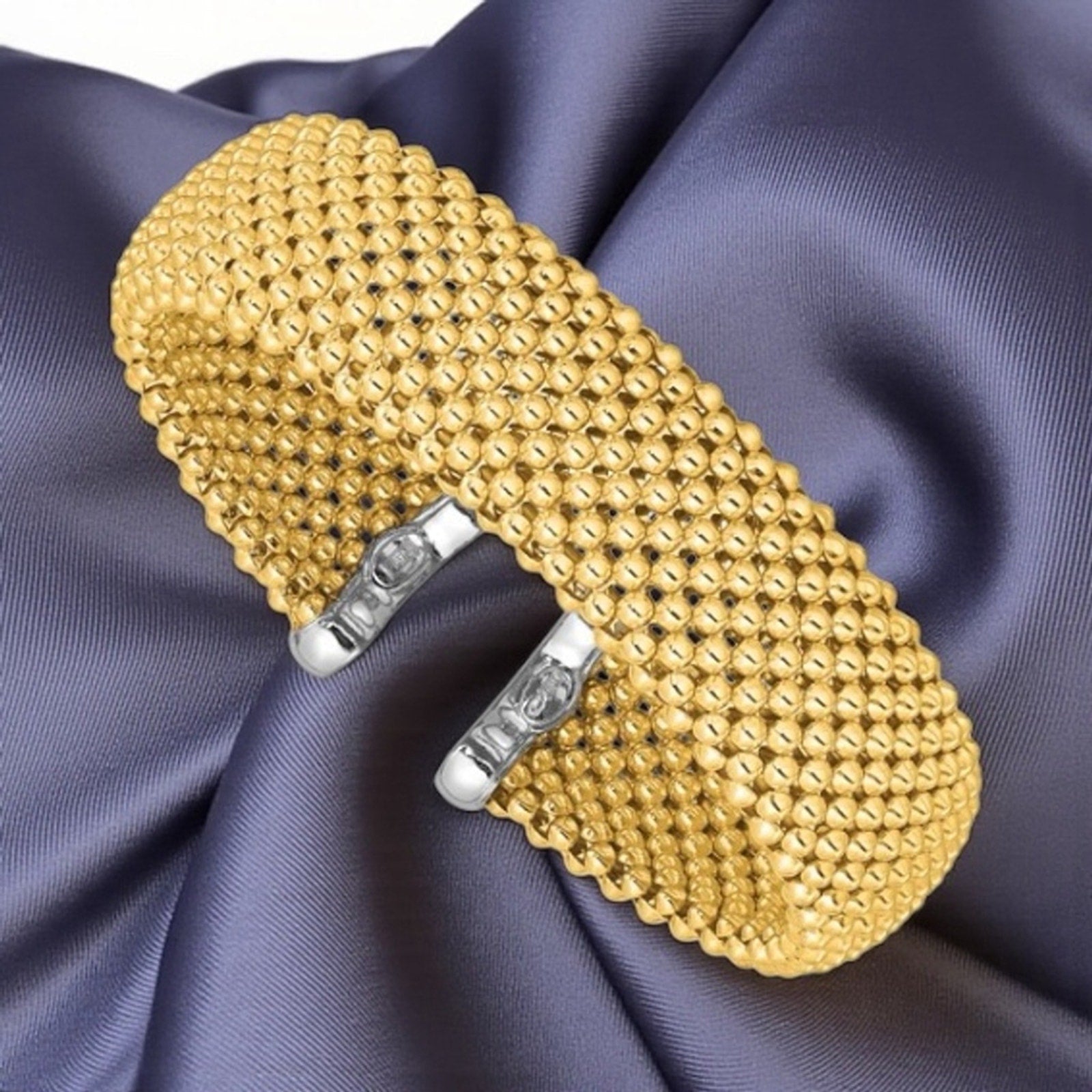 * Unique Texture: A beautifully Beaded texture covers the width of the bracelet, giving it a luxurious, mesh-like feel and appearance.