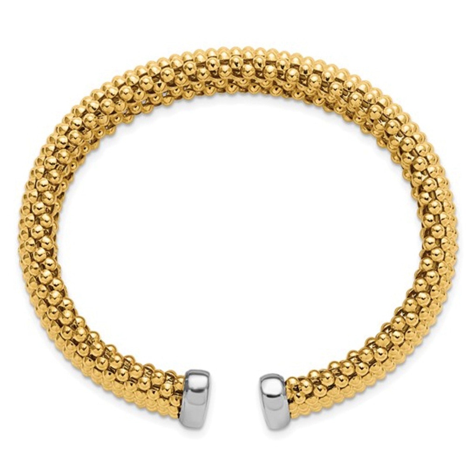 Herco Sterling Silver Rhodium-plated and Gold-tone Polished Beaded Cuff Bangle
