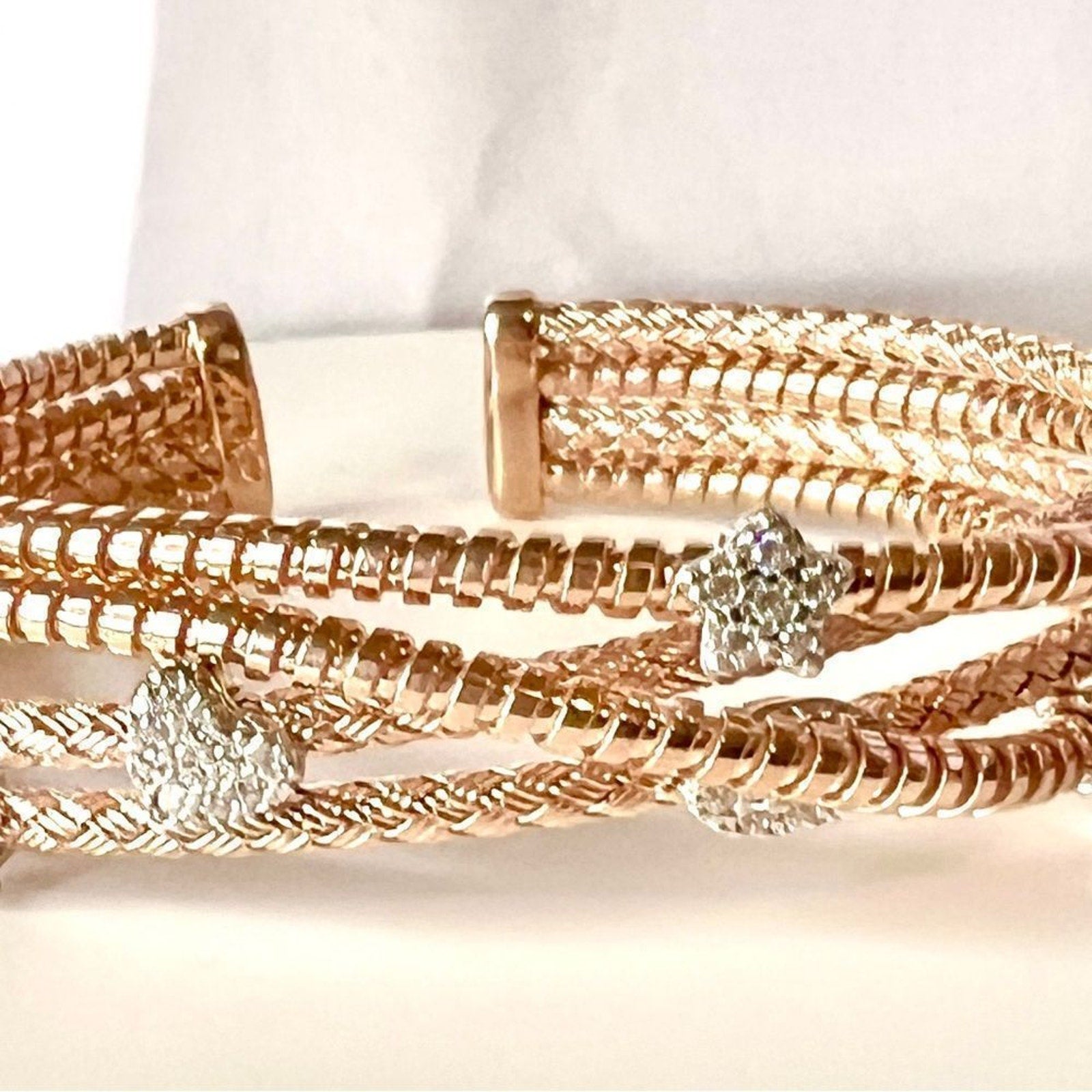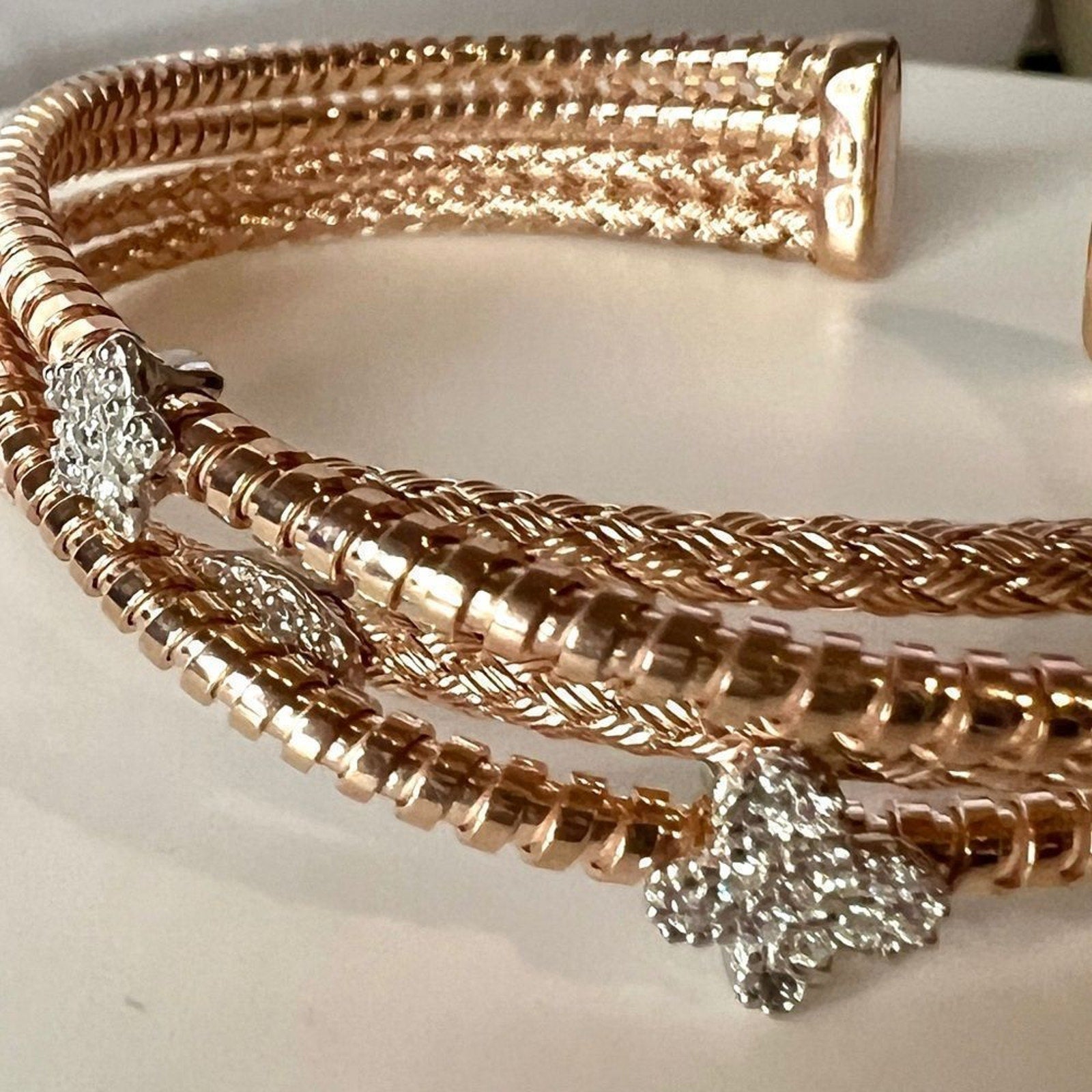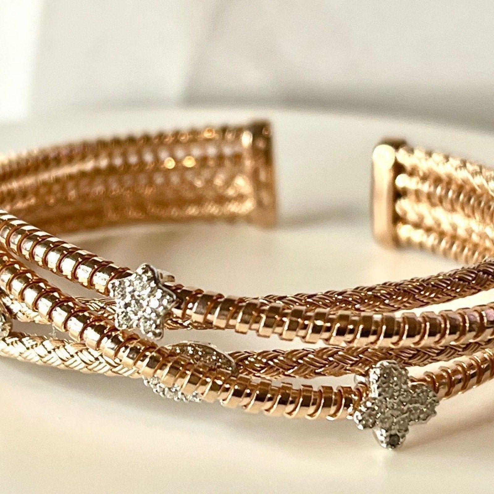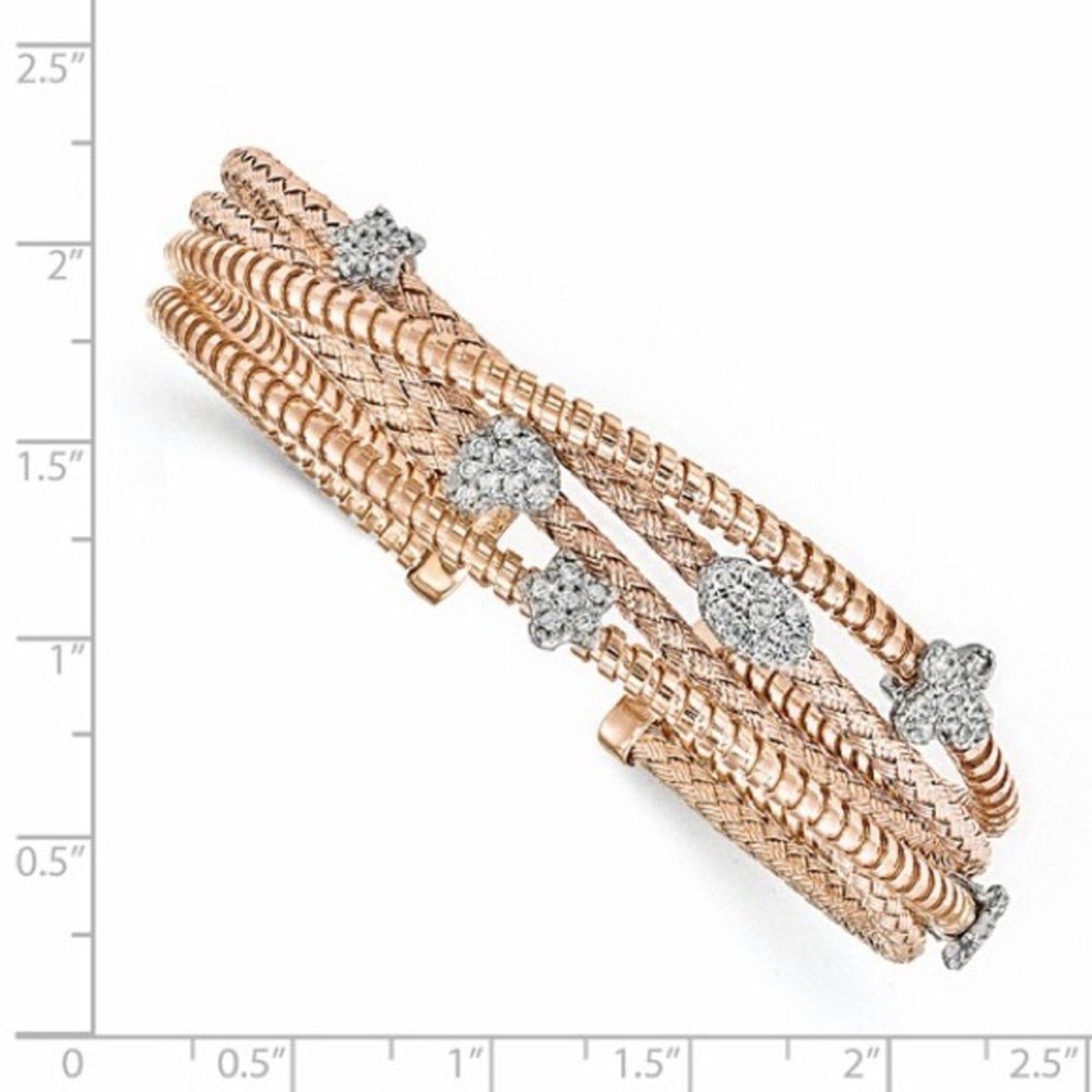 Whether you're attending a special event or simply want to add a touch of glamour to your everyday style, Leslie's Sterling Silver Rose-tone CZ Polished Textured Cuff Bangle is a must-have accessory. Its versatility, exceptional craftsmanship, and timeless design make it an investment piece that will be cherished for years to come.
