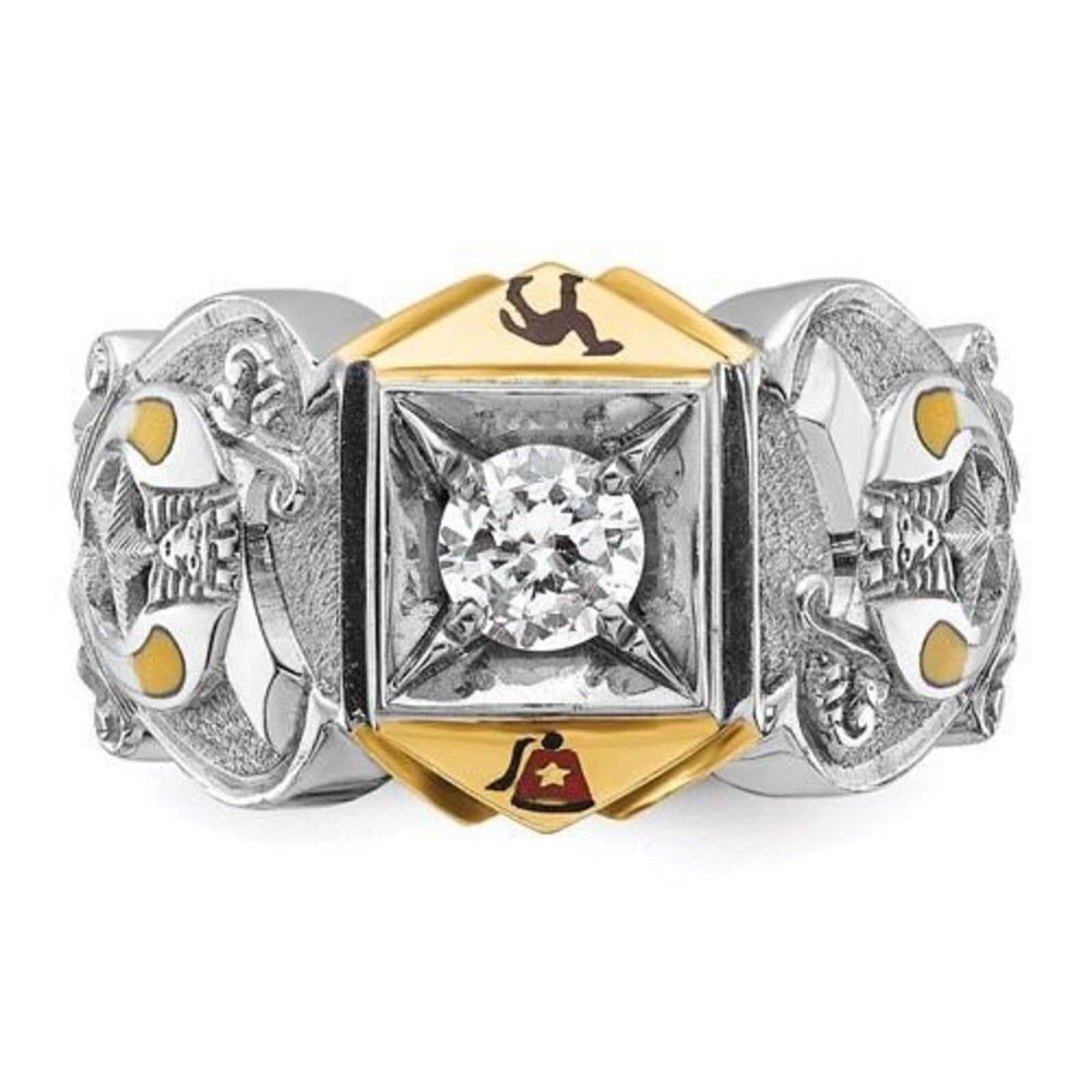 IBGoodman 14K Two-Tone Men’s Masonic Shriner’s Ring – 0.50 CT Diamond, Enamel, Gothic Shank