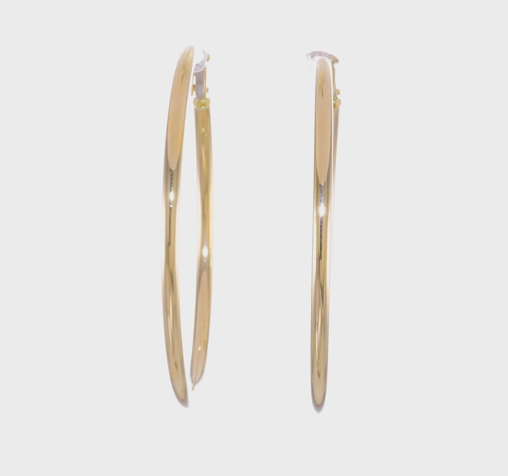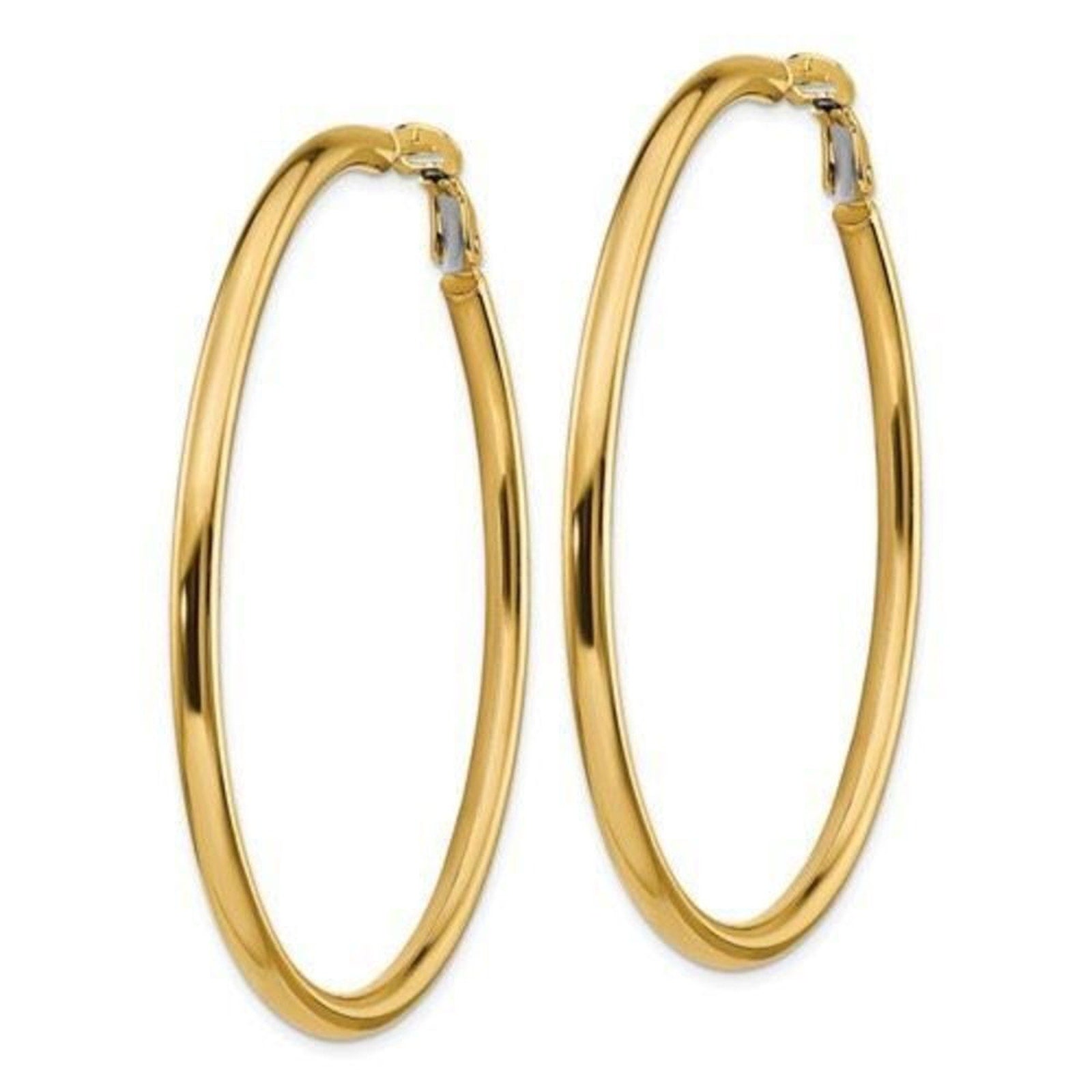 New 14k Gold 3x50mm Polished Round Oversized Omega Back Hoop Earrings