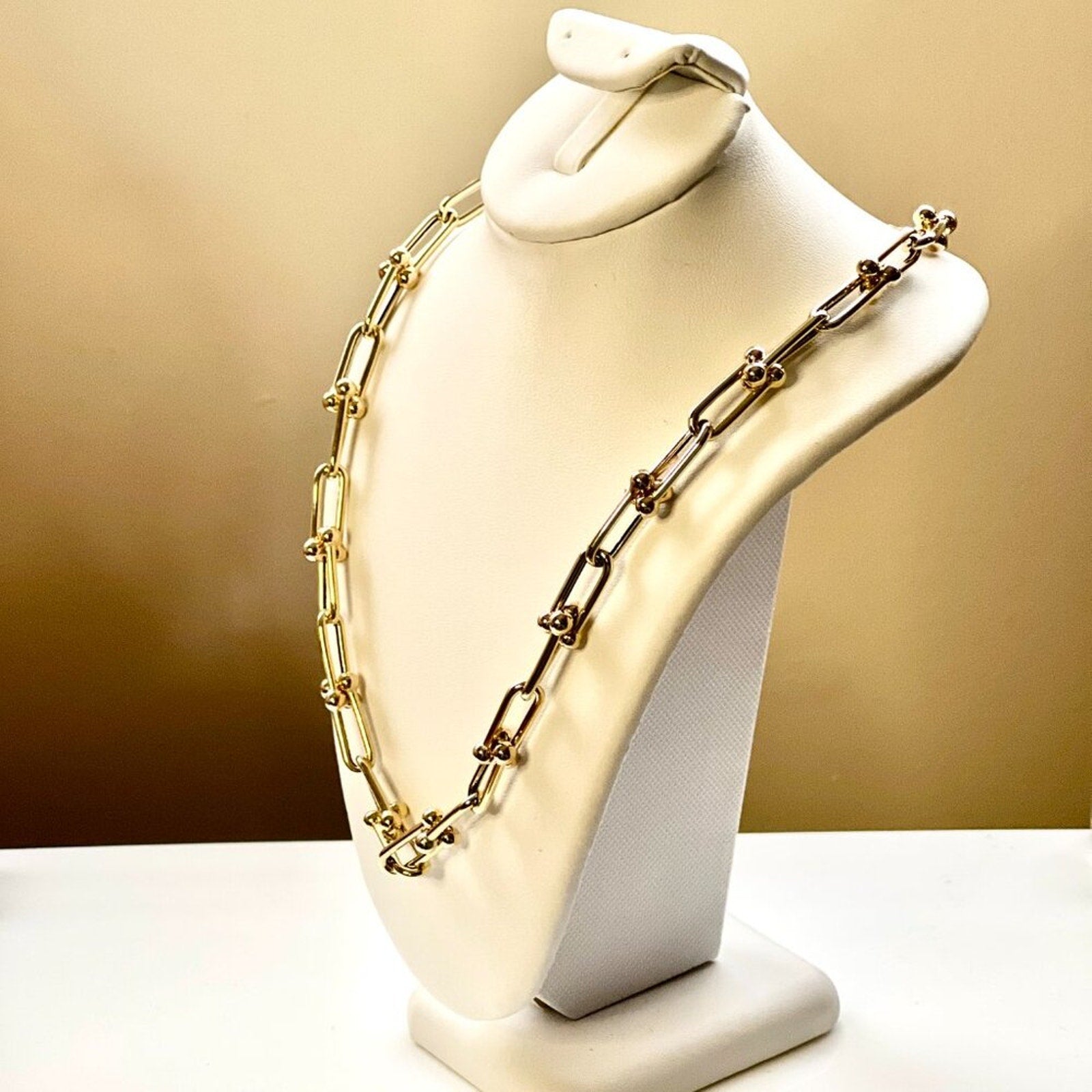 Contemporary and bold Italian made open link necklace. This 14k gold necklace brand new, by Leslies.