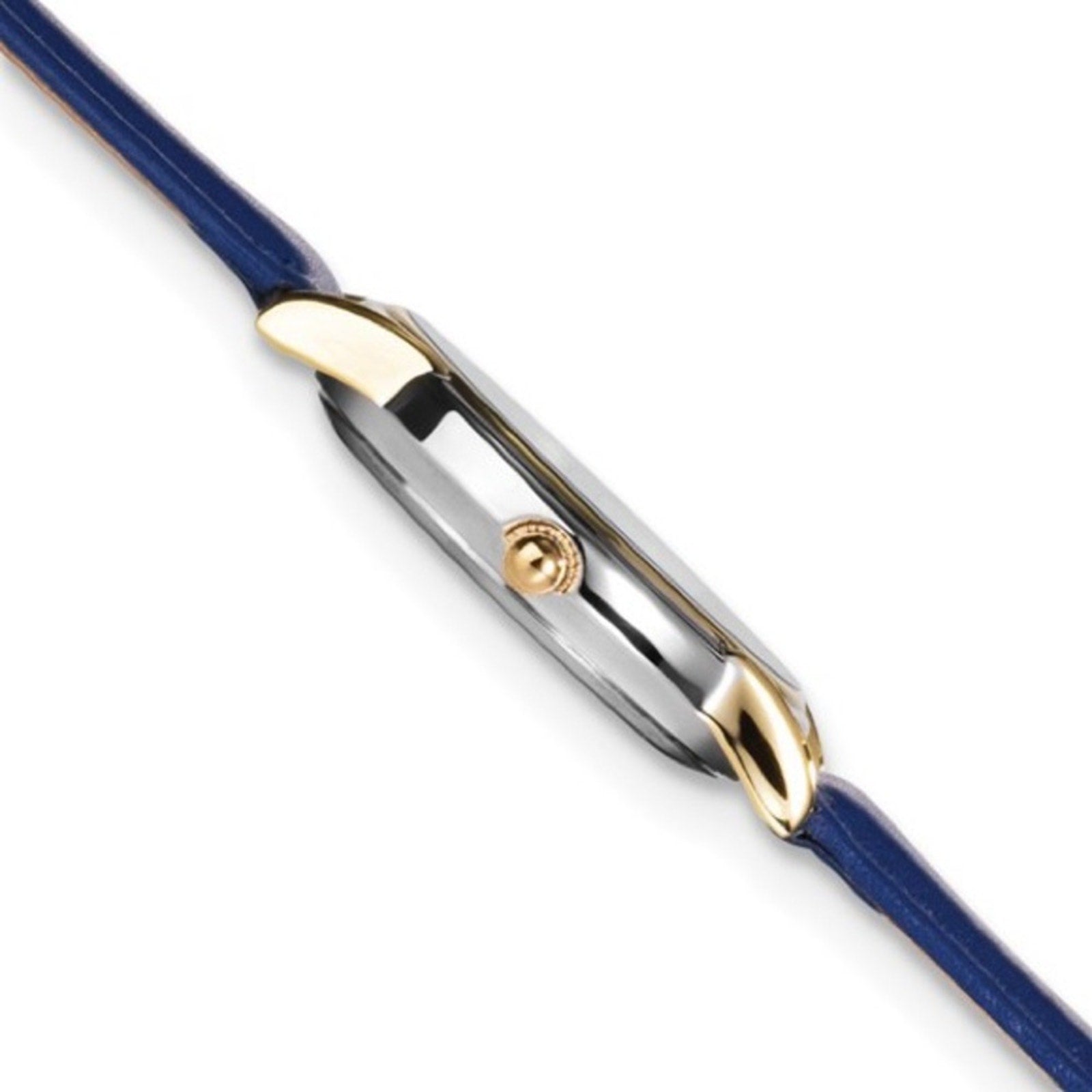 - **Elegant Design:** Featuring a sleek 35 mm IP-plated gold-tone alloy case, paired with a genuine blue leather band (8.9 inches in length, 18 mm wide) and a matching gold-tone buckle.
