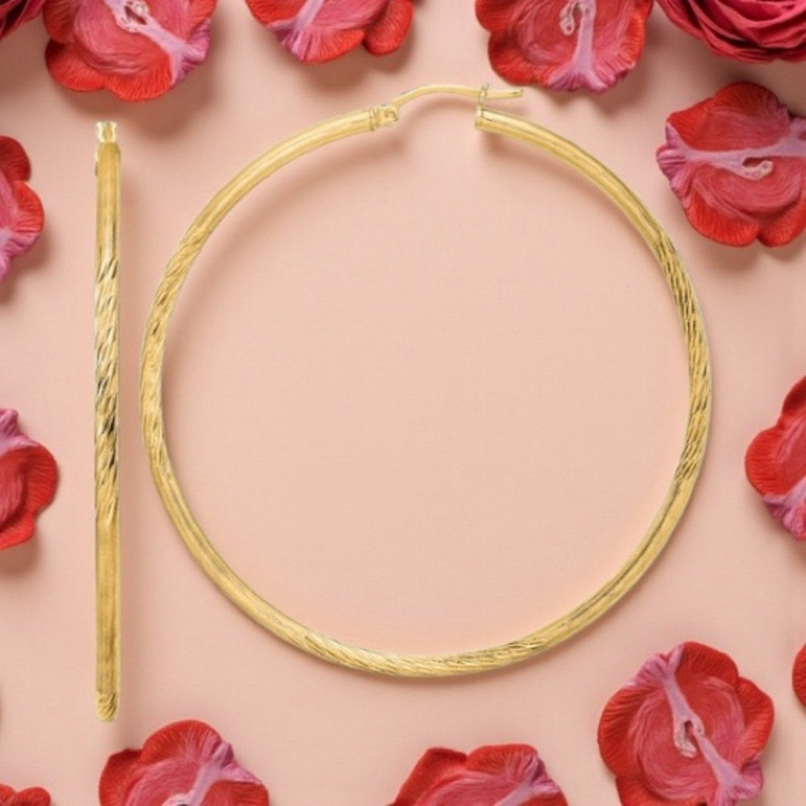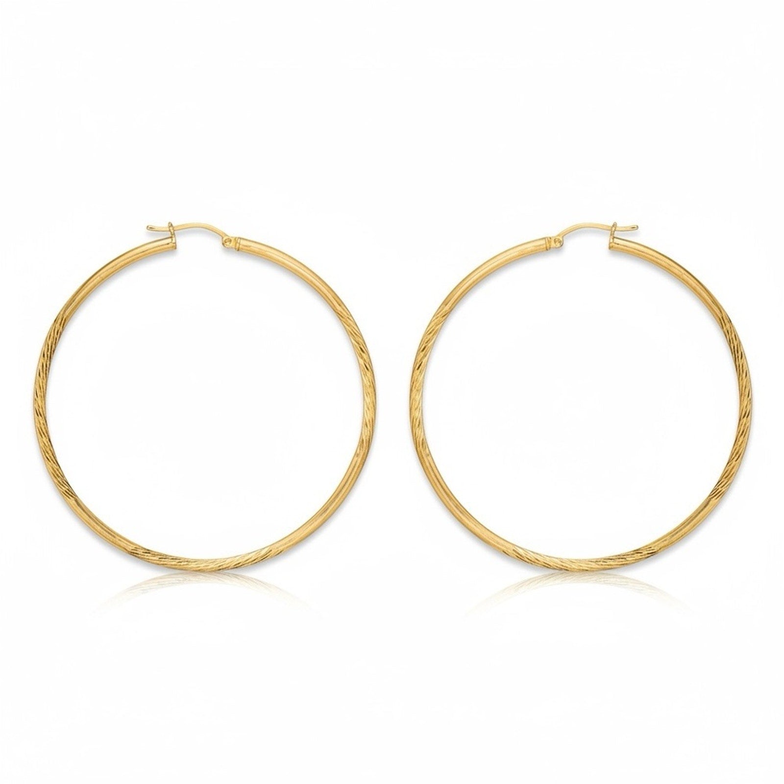NWT 67mm Oversized Diamond-Cut Hoop Earrings 14k Gold Plated Sterling Silver