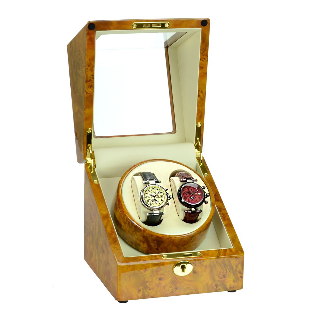 The Steinhausen Heritage Watch Winder is a luxurious and elegant watch winder case that is crafted exclusively out of a handsome burlwood finish. The interior houses a gorgeous leatherette that complements the color of the wood excellently. Its stylish nature makes it a watch winder that you will want to display on any shelf as it winds. Furthermore, this watch winder comes with a clear window that provides a view into the box as the watch winds. Simply open the easy access top, insert your favorite timepiece and choose your setting. Close the box and allow the watch winders to work their magic. Then, return to the watch when you are ready to wear it again. It is that simple! Automatic watches are a great addition to any watch enthusiast's collection. They do not involve much attention when it comes to winding them, as they function off of the movement of your arm and wrist to power the winding mechanism. As a timepiece collector, you likely have more than one automatic watch that you enjoy wearing. When it comes time to cycle out one watch for the next, ensure that your automatic watch is still going to be running smoothly when you put it back on with the Steinhausen Heritage Watch Winder.