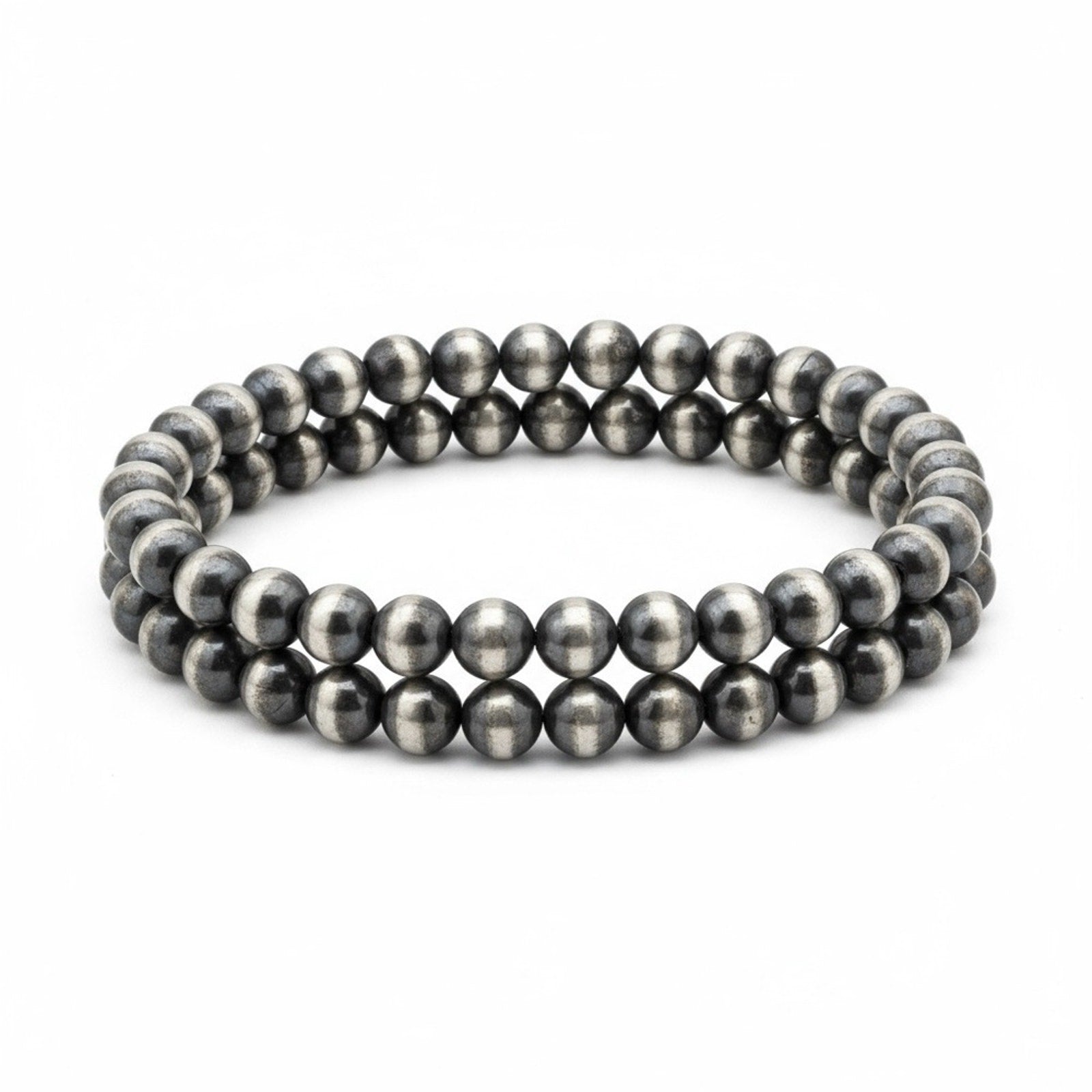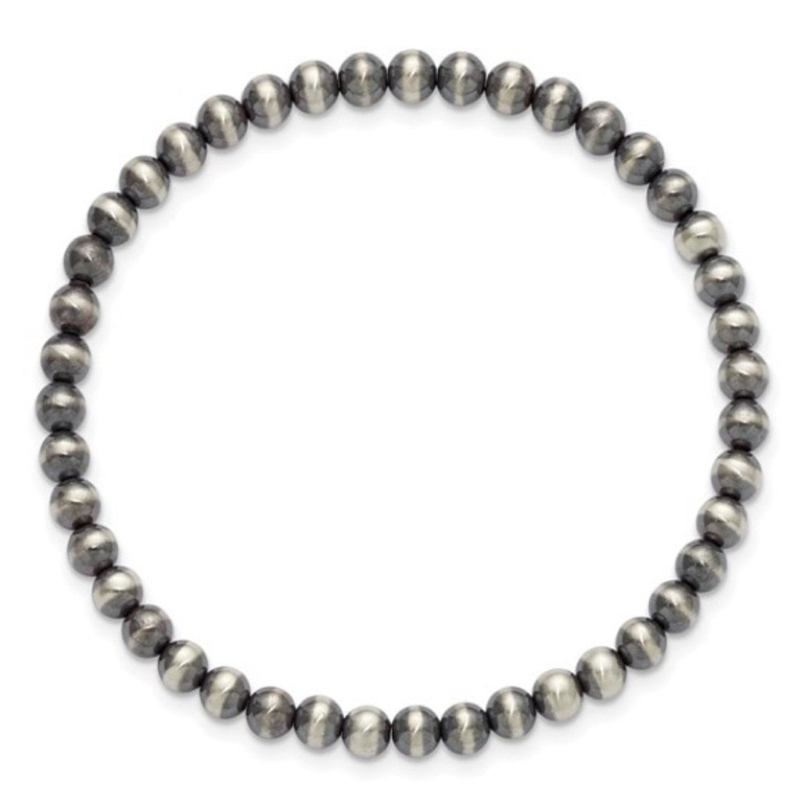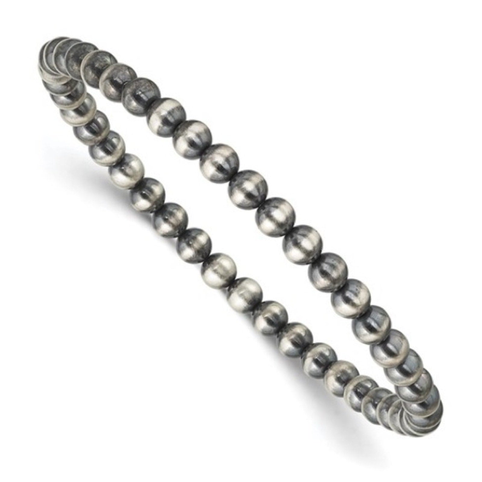 Sterling Silver 6.5in 4.00mm Navajo Style Beaded Stretch Bracelet