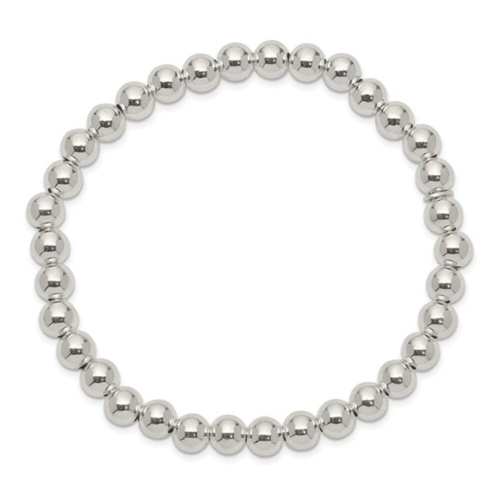 Sterling Silver Polished 6mm Bead Slip-on Stretch Bracelet – Made in Italy