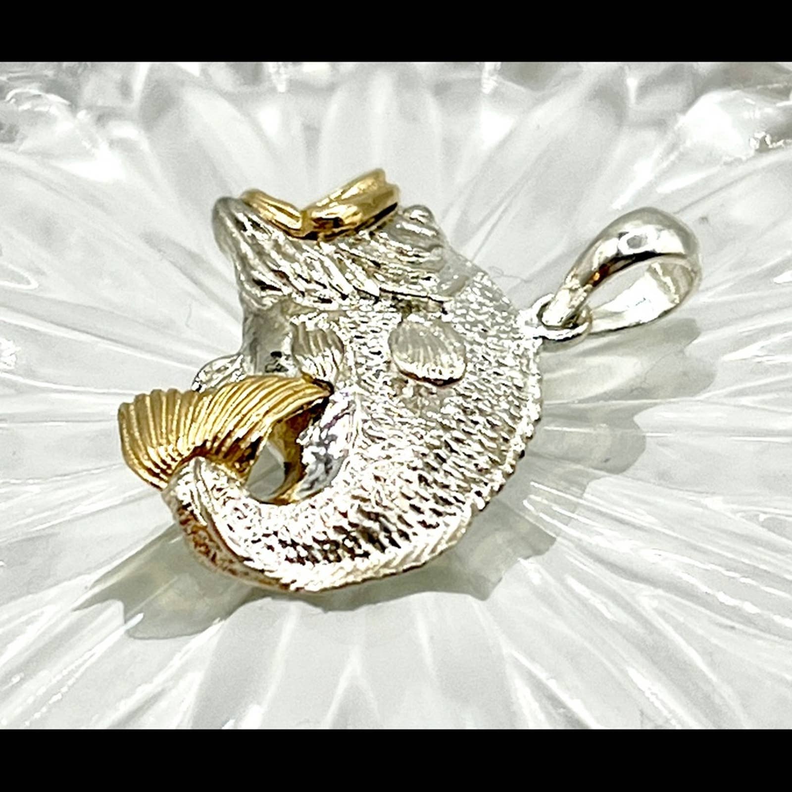 Sterling Silver Polished Jumping Bass with 14k Accents Pendant